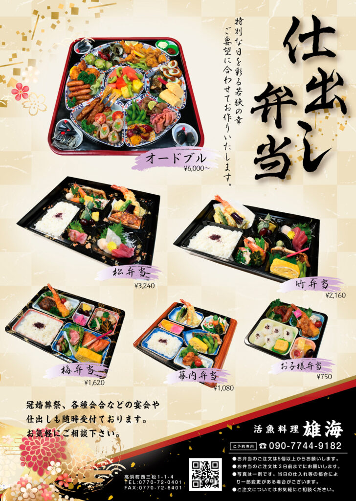 ●お弁当のご注文は2日前までにお願いします。